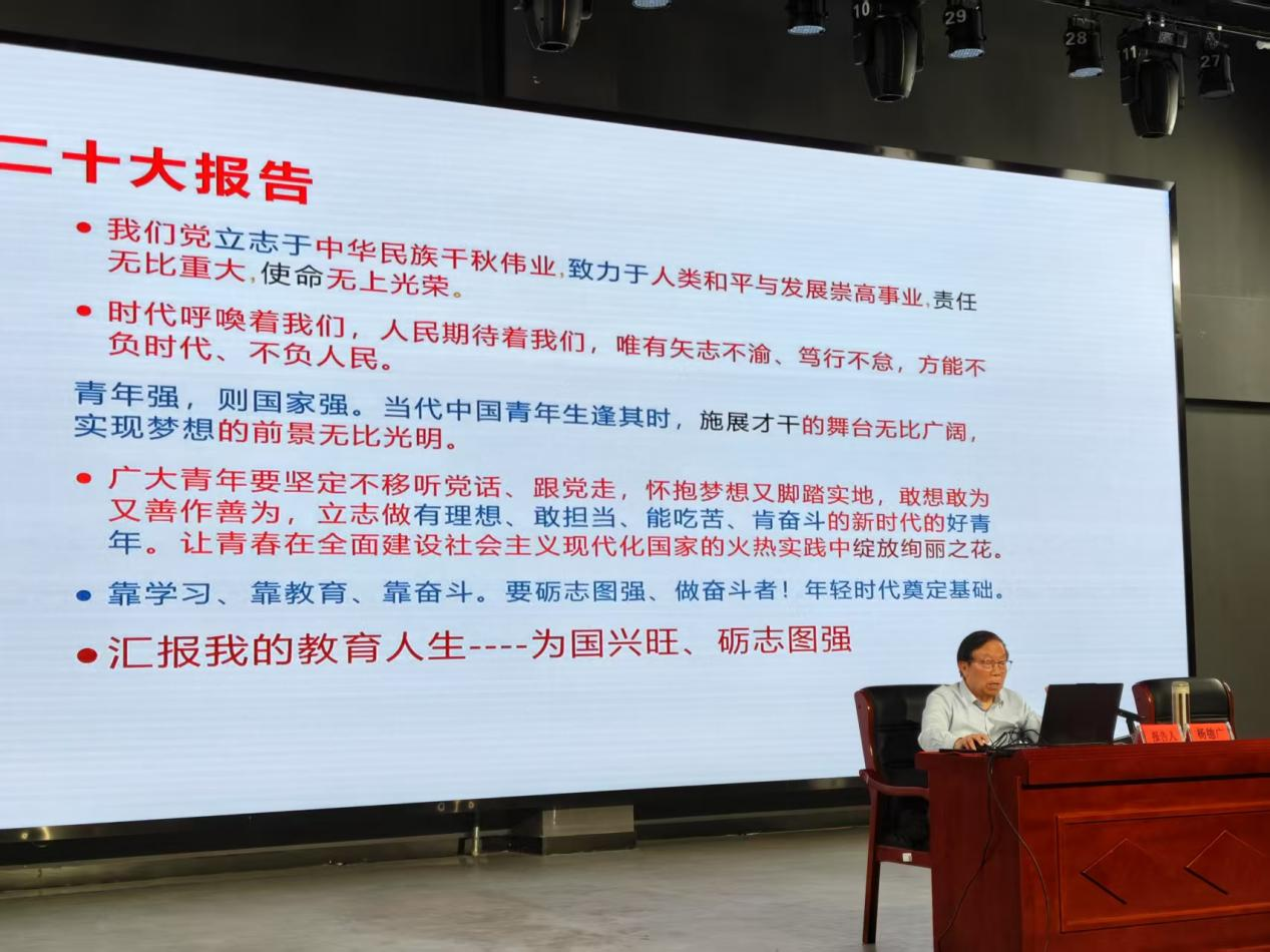 杨校长在报告中分享了自己“为国兴旺、励志图强”的教育人生。他深情回顾了艰难的青年时代和发奋图强的求学经历,讲述了自己如何从农民儿子到大学教授、大学校长的奋斗历程,以及坚守为人民服务初心、实现“读书梦、图强梦、教育家梦、慈善梦”的心路历程。杨校长的报告为师生提供了一个个教育改变人生的鲜活事例,充分体现了他对国家和教育事业的热爱、对理想和信念的执着、对学生和学校的无私奉献。为回报党和人民的培养,他设立“砺志奖学金”,资助贫困学子完成学业,用实际行动诠释个人的理想和情怀。
