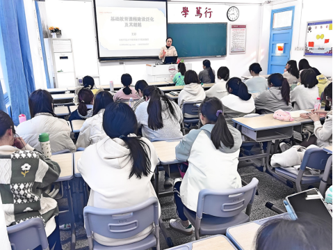 王婷副教授在菱湖校区教学楼213作题为“基础教育课程建设泛化及其超越”的学术报告,2022级汉语言文学(师范)专业的同学参与了本次报告会。