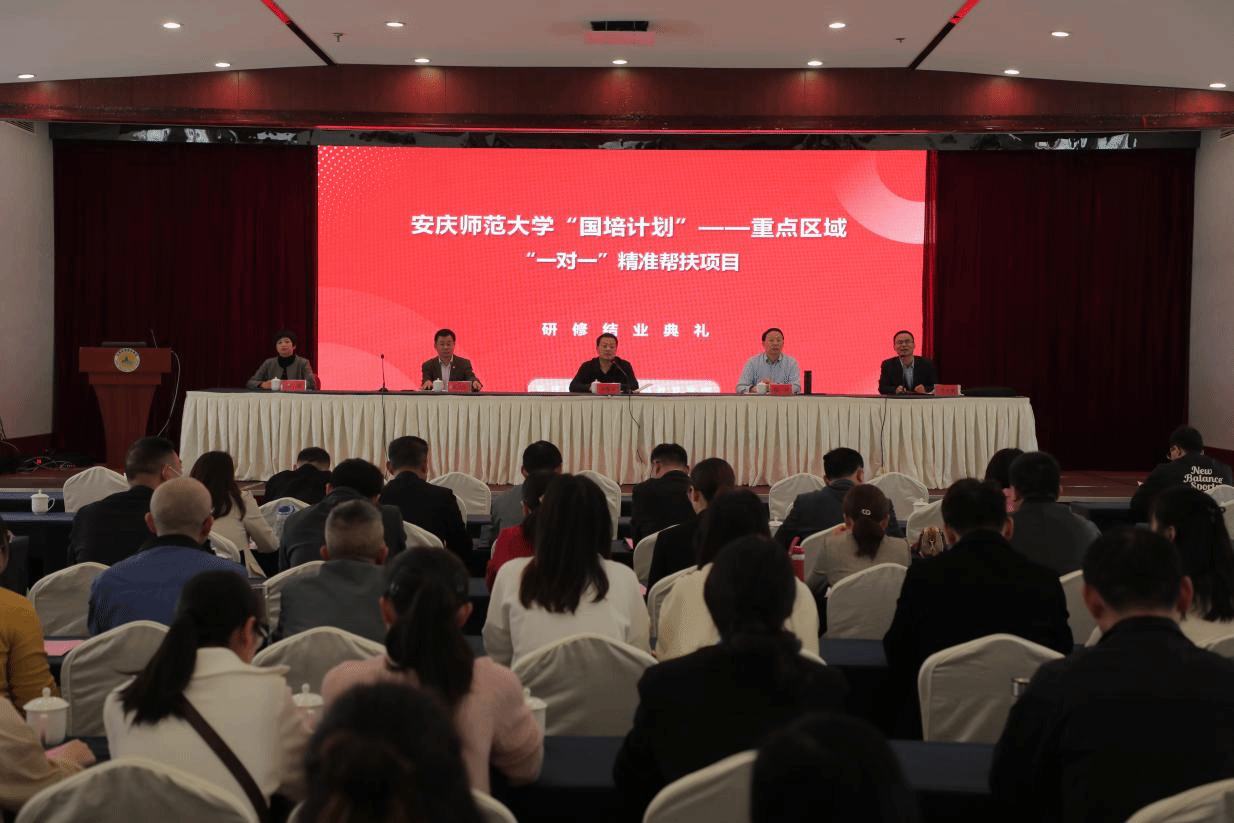 4月21日上午,“国培计划”——重点区域“一对一”精准帮扶项目研修结业典礼在安庆市皖源国际大酒店举行。教师教育学院副院长王皓宇以及参加会议的专家名师、参训区县教师培训负责人及参训学员150余人参会。会议由项目负责人李义胜教授主持。