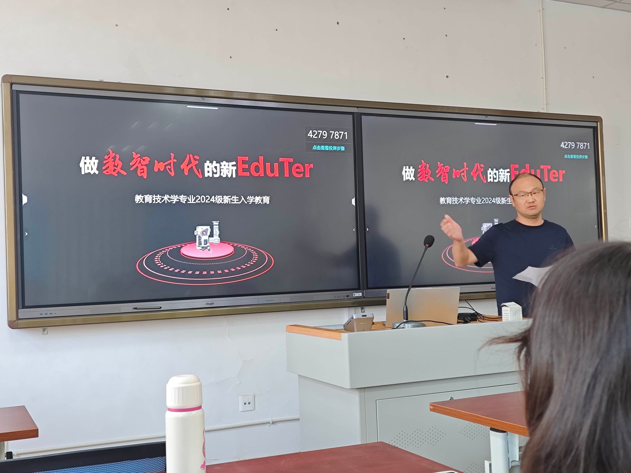 2024年9月24日,教育技术系开展2024级新生入学教育。教育技术学专业朱斌彬博士、优秀学生代表鲍欢(2022级)、杨茹婷(2022级),以及2024级全体新生莅临现场。活动由系主任韦伟主持。
