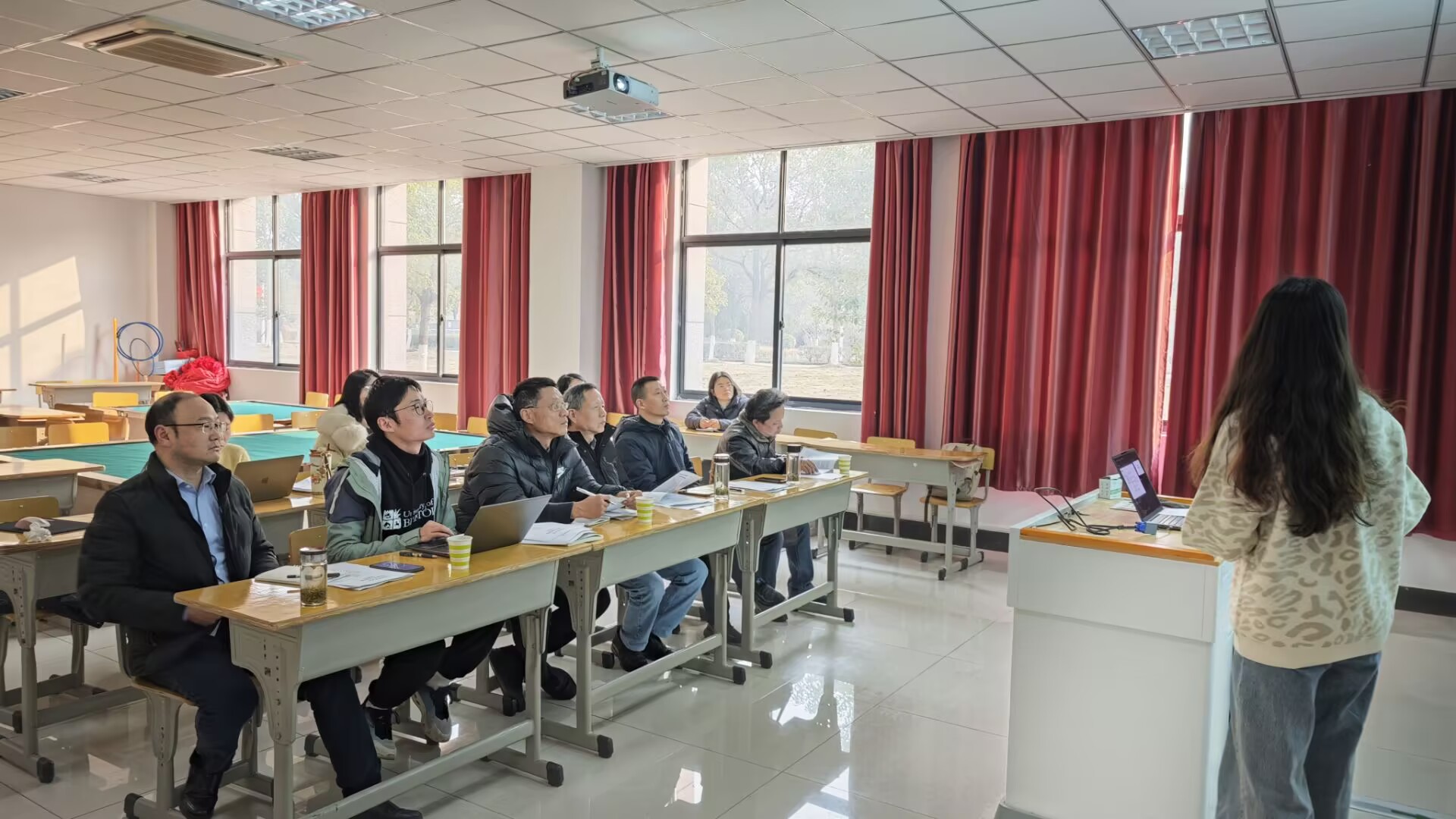 首先,2022级教育硕士郝静婷、杨丽芳依次作中期考核汇报。汇报了开题以来围绕毕业论文开展的主要活动,包括实习实践、模型构建、问卷设计、调查实施、数据统计、论文撰写等。评委老师对论文进度比较满意,认为前期工作扎实有效,但也就研究过程的疑点、难点提出自己的想法;强调数据分析必须多维度、多角度、多层次;特别是论文中提到的对策和措施必须有针对性,做到有理有据。