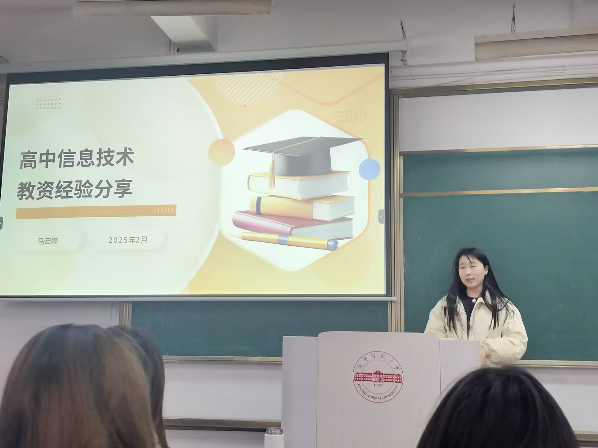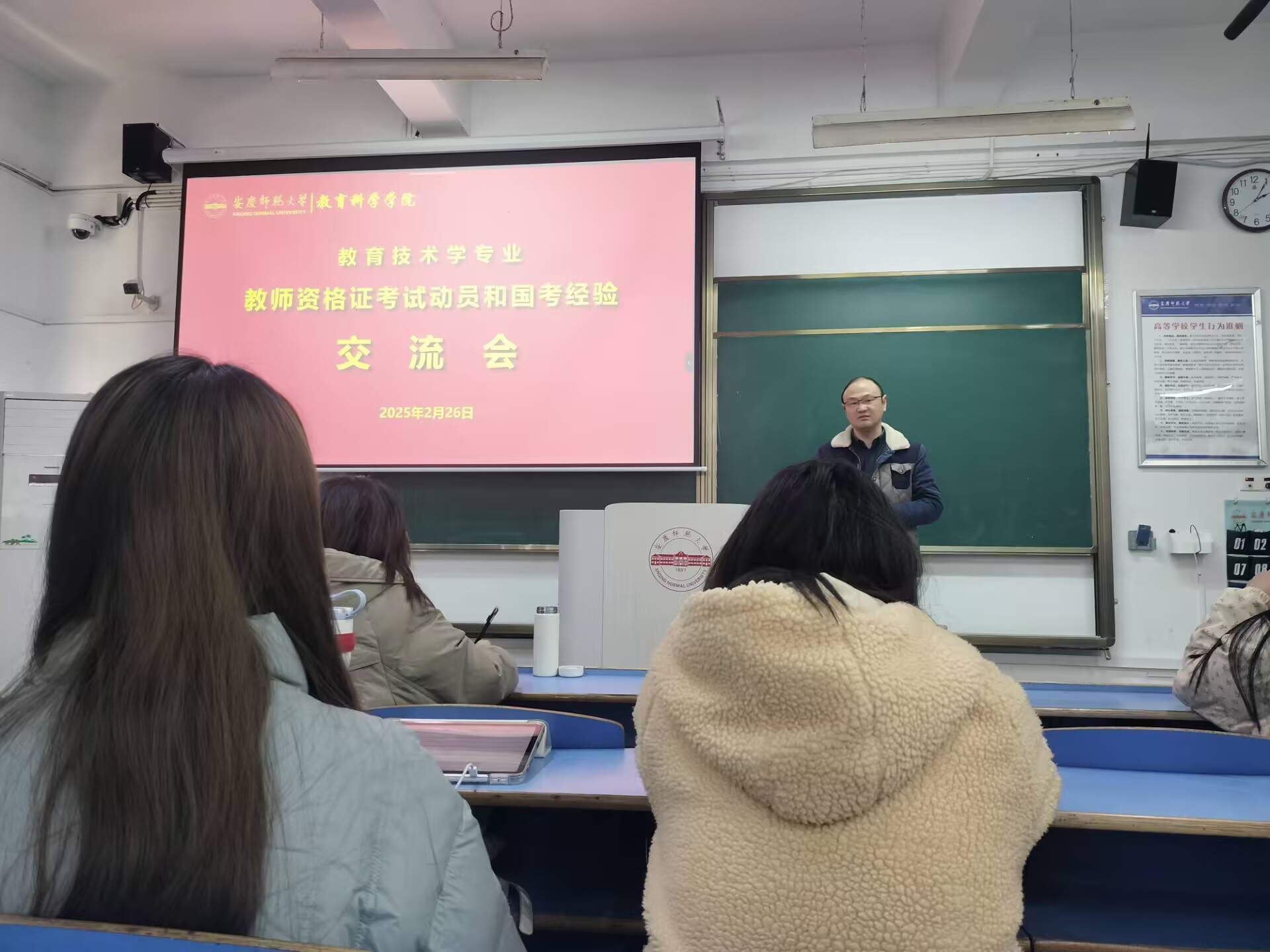 教育技术系举行教师资格证考试动员和国考培训会。会议邀请2022级教育技术学专业马云婷同学担任主讲,由韦伟老师主持。教育技术学专业2022级、2023级、2024级共110余人参加。