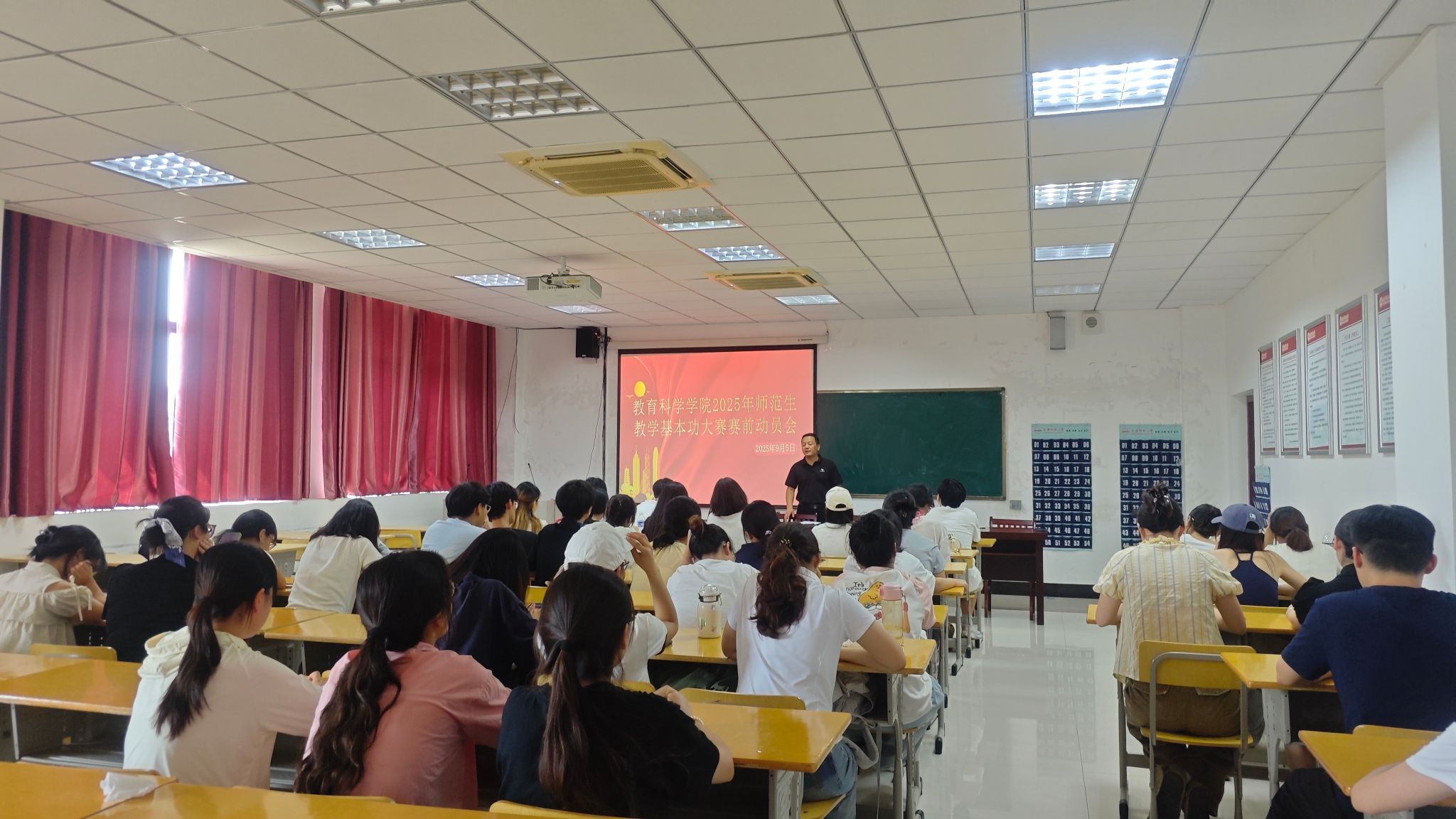 在J305教室召开2025年师范生教学基本功大赛赛前动员会。全体参赛选手及学院相关指导教师参会,会议由学院副院长王皓宇主持。