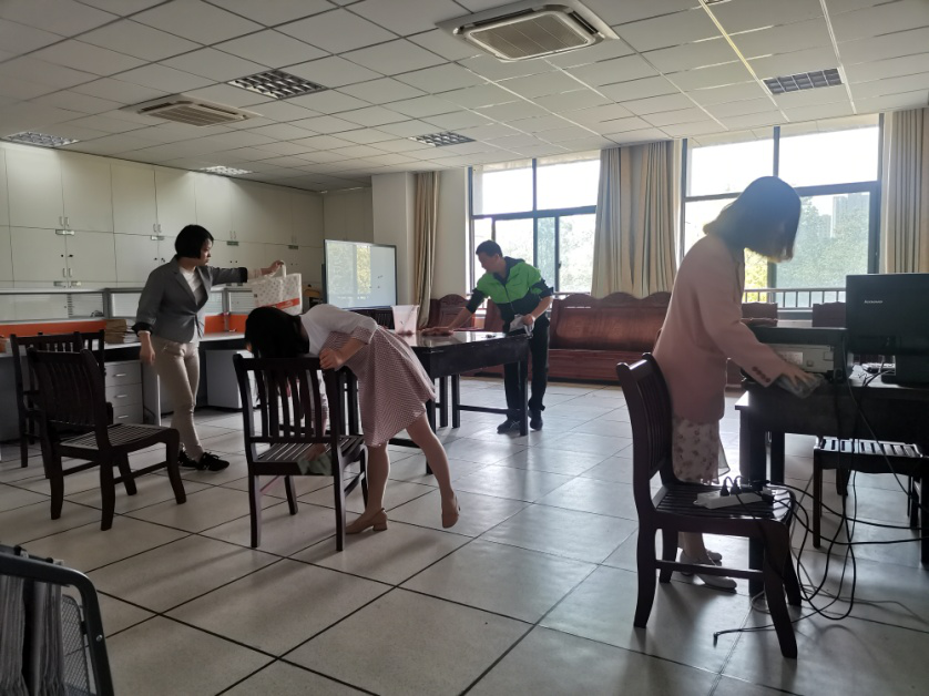 在全国第32个“爱国卫生月”来临之际,结合扎实做好校园疫情防控与2020年春季开学复课筹备工作,为弘扬爱国卫生运动精神,维护和保障师生生命安全和身体健康,4月29日上午,教师教育学院行政办公人员和教工机关党支部全体党员,凝心聚力,科学防控,集中开展了学院办公区域和教师活动区域的环境卫生大扫除和消毒杀菌工作。