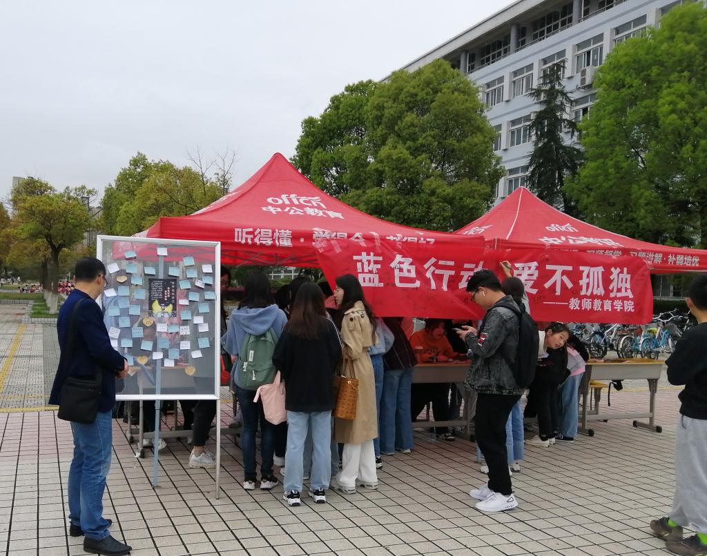 4月2日是第14个世界自闭症日,为了让更多的人了解自闭症儿童,教师教育学院教工特殊教育教研室党支部组织了“蓝色行动,爱不孤独”的主题党日活动。一部分师生在校内进行宣传,一部分师生赴安庆市特殊教育学校进行交流。