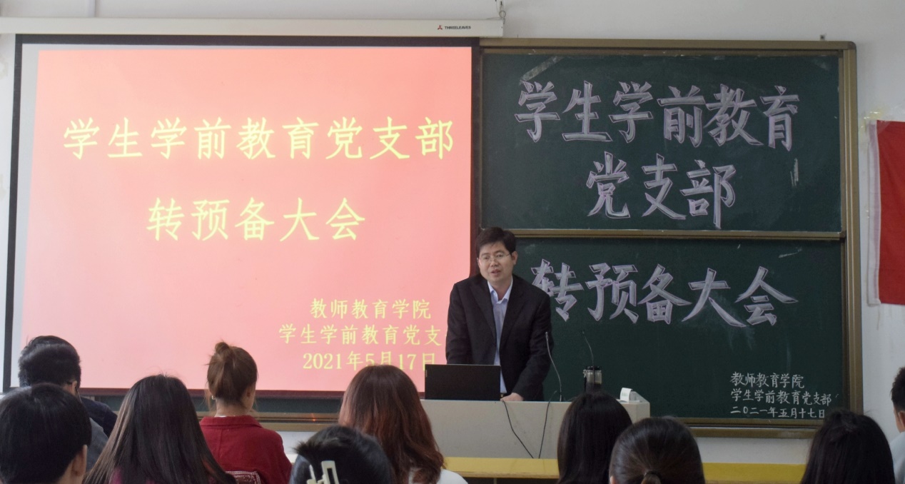 5月17日,学前教育党支部召开支部大会,党委书记陈志超,学生学前教育党支部书记方泽宇,辅导员姚强诚及学前教育专业全体党员和七名发展对象参加此次大会。