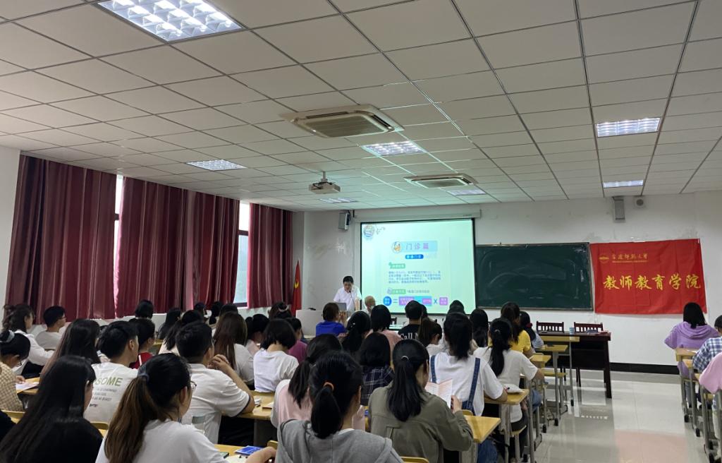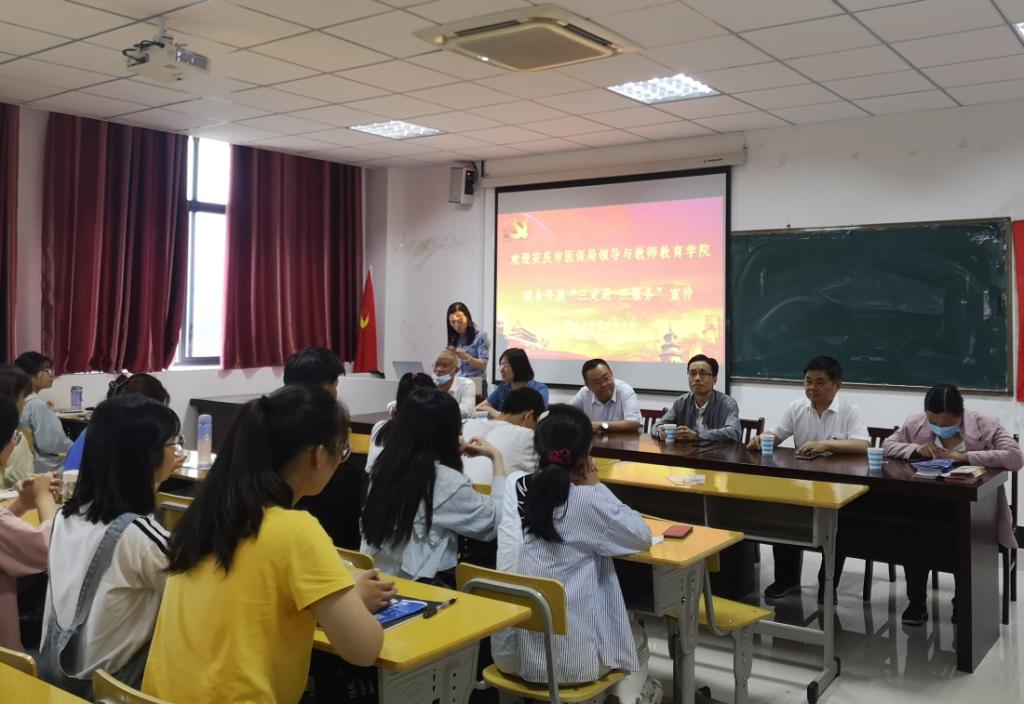 为加强落实为群众办实事,进一步保障学生的基本医保权益,加大对医保政策的了解,提升同学们的参保意识。5月26日下午,教师教育学院与安庆市医保局在J305教室联合开展“三走进,三服务”宣传活动。安庆市医疗保障局党组成员、副局长钱大兴,主任朱丽虹,副主任严涛,待遇核付科科长黄定安,征缴科科长吴多双,办公室主任李慧,征缴科工作人员彭婉君出席了本次活动,会议由教师教育学院老师刘雪梅主持,学生小学教育党支部的全体党员、积极分子共50余人参加宣讲会。