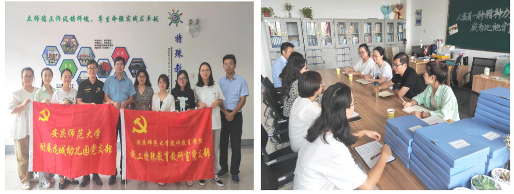 9月14日,安庆师范大学附属龙城幼儿园党支部书记许世平、幼儿园园长姚萍一行来到教工特殊教育教研室党支部进行党建工作交流。