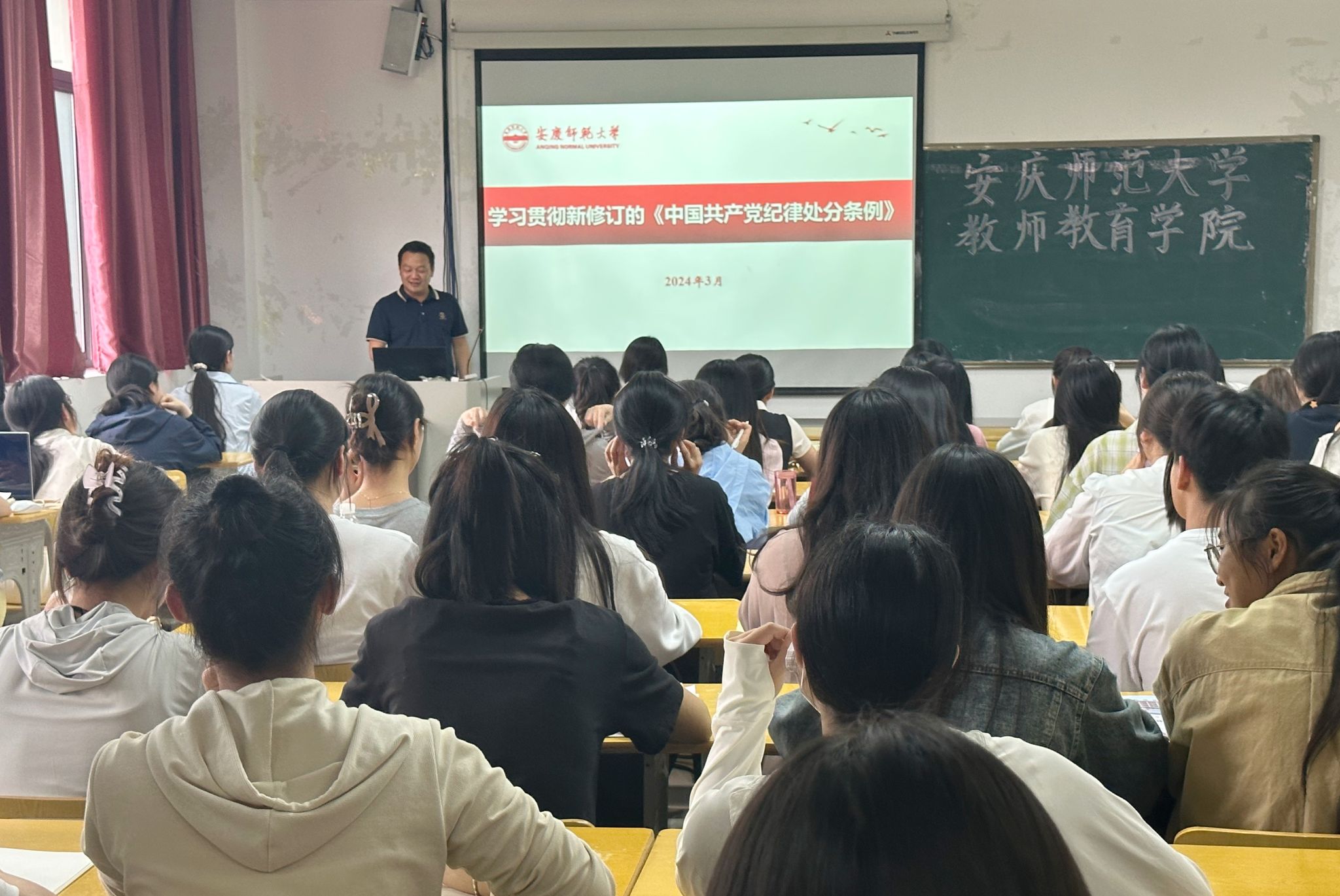 在J305教室开设学习贯彻新修订的《中国共产党纪律处分条例》专题党课。学院党委委员、副院长王皓宇担任主讲人,全体第69期入党积极分子参加此次学习。
