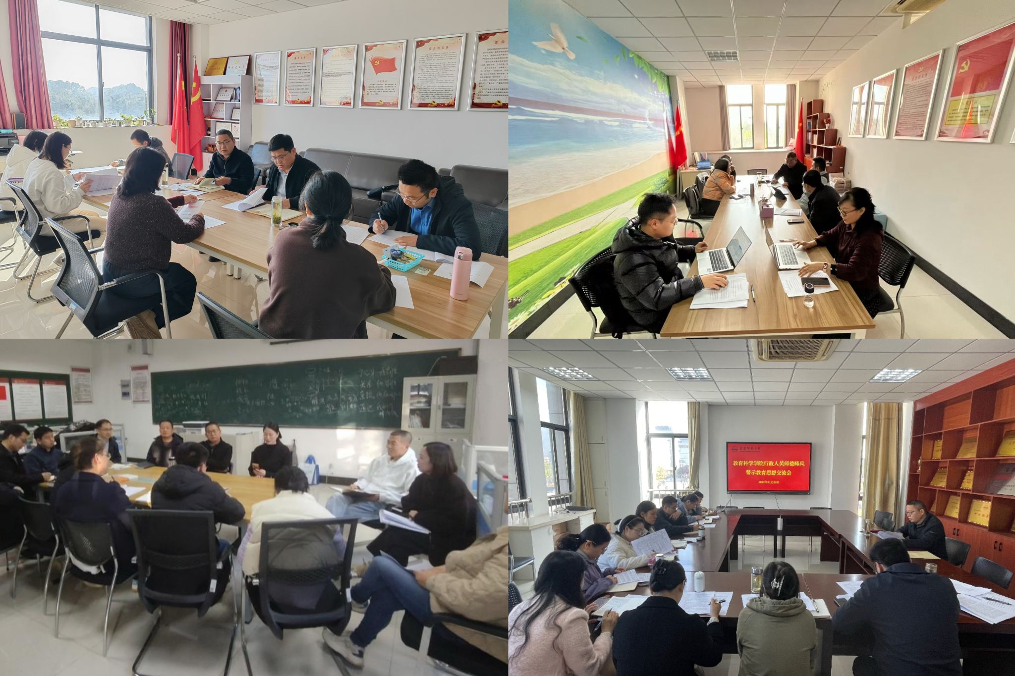 11月26日至12月3日,快猫 以各党支部(教研室)为单位召开师德师风建设警示教育思想交流会。学院领导何孔蛟、吴云助、许世平、陈效飞、王皓宇等分别列席指导联系的党支部(教研室)警示教育思想交流会。会议由各党支部书记(教研室主任)主持。全体教职工参加所在党支部(教研室)会议。
