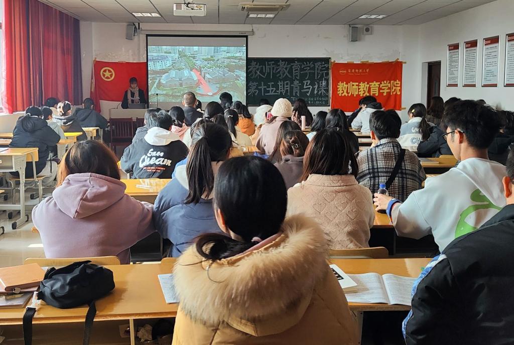 第15期第3次青马课在J305开课,2021级各班班长、团支书及全体学生会成员参与本次青年马克思主义培训课程。本次课程由李慧子主持,与同学们共同学习交流。