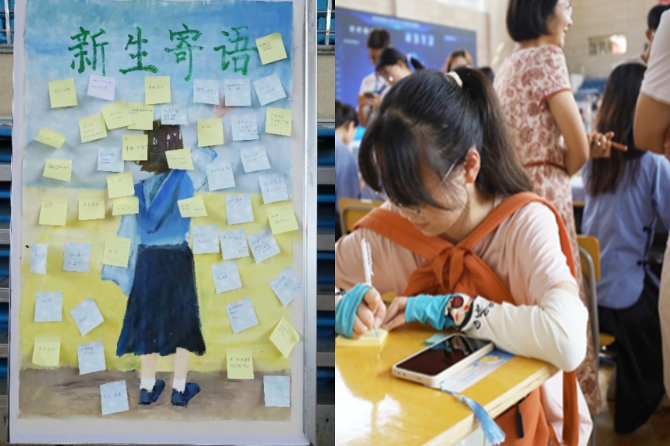 ,新生们手持书签,在“新生寄语”的背景板上留下自己大学的第一抹印迹。“希望能够带给新生们一次特殊的入学体验,让他们在今后的大学生活中能铭记自己的初心,不断突破自己。”姚强诚说。