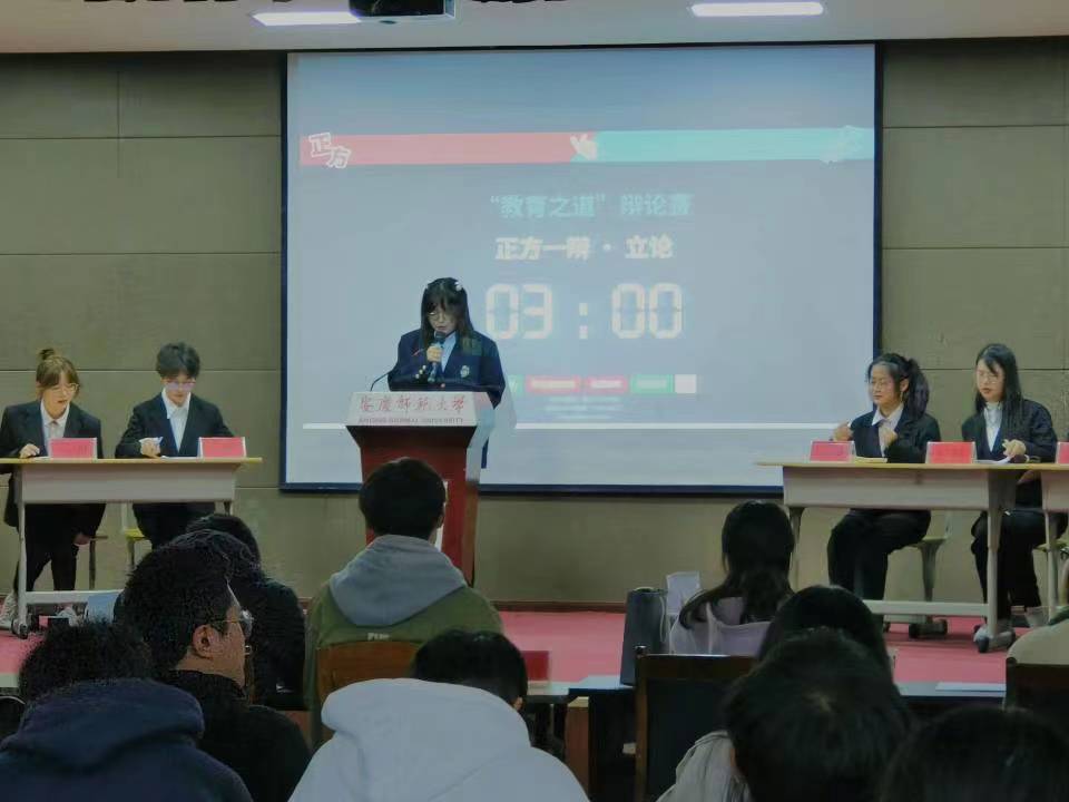 11月16日,由院团委学习实践部和院辩论队联合举办的“教育之道”辩论赛总决赛在龙湖食堂三楼报告厅举行。由院辩论队队长冯进、副队长吕雨辰、生命科学辩论队队长王逍然共同担任评委,各学院辩论队和学生观众到场观看。本次辩论赛由沈璨、聂余慧主持。