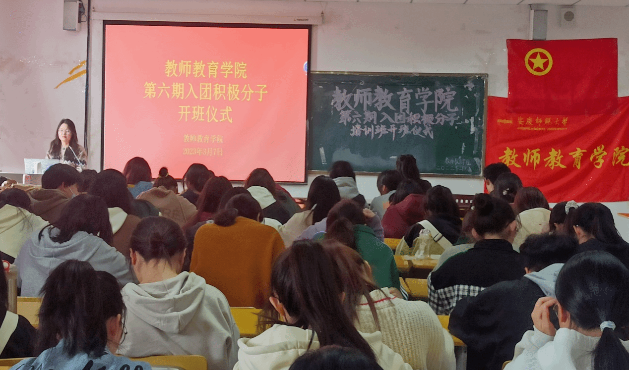 举行第六期入团积极分子培训班开班仪式,团学负责人姚强诚老师与会指导,会议由团委实践部袁畅主持。