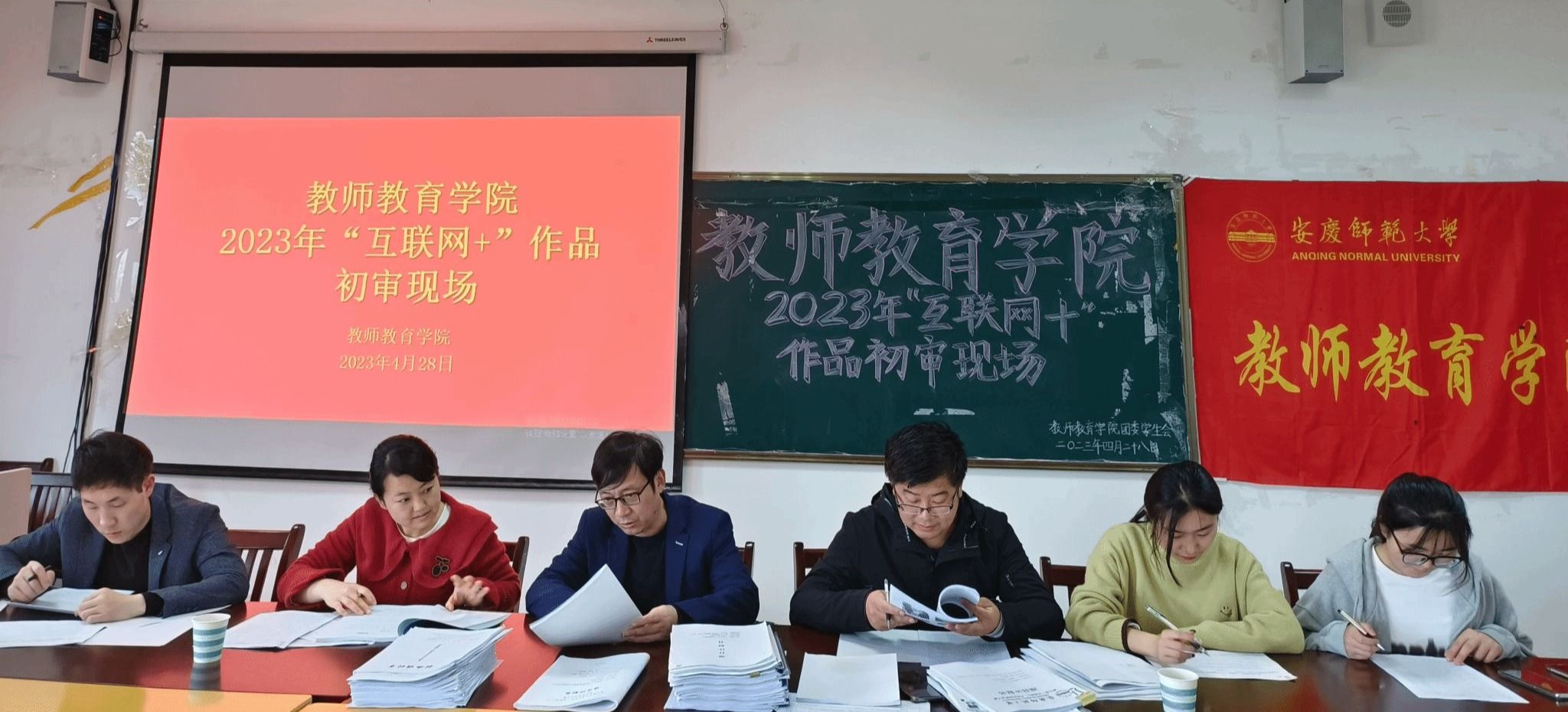 2023年“互联网+”大赛作品初审会在J305准时召开。本次初审会共收到全院124份作品,由院党委副书记许世平、校团委实践创新部严峻、学前专业老师王颖莉、辅导员张文君、汪洋洋及学生代表何昕怡担任评委,院团委负责人姚强诚主持会议。