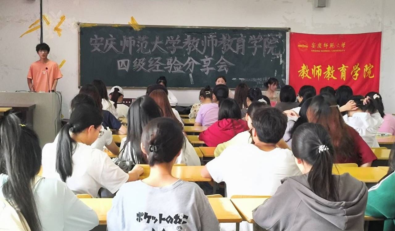 于J305教室举办英语四级经验分享活动,学院80余名学生到场参加,21级特殊教育胡兆敏、周彤彤和21级应心2班牧丽应邀主讲,活动由团委学习实践部沈璨主持。