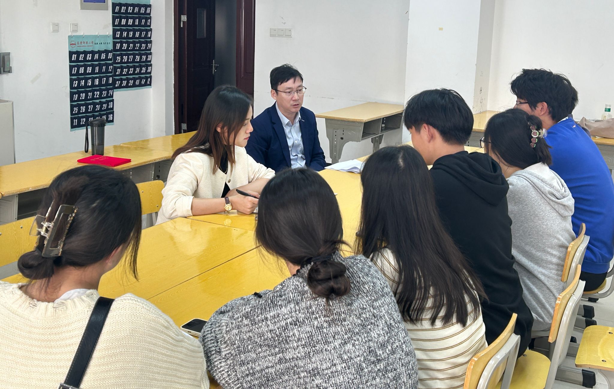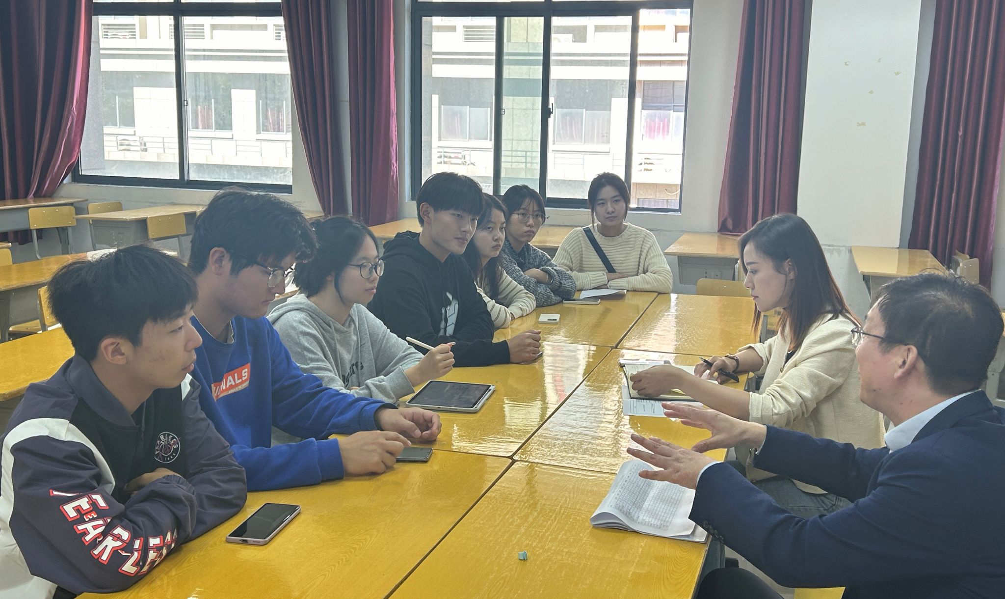 于J212教室召开团委工作会议,学院党委副书记许世平出席指导工作。会议由团委负责人姚强诚主持,院团委及学生会干部到场参会。