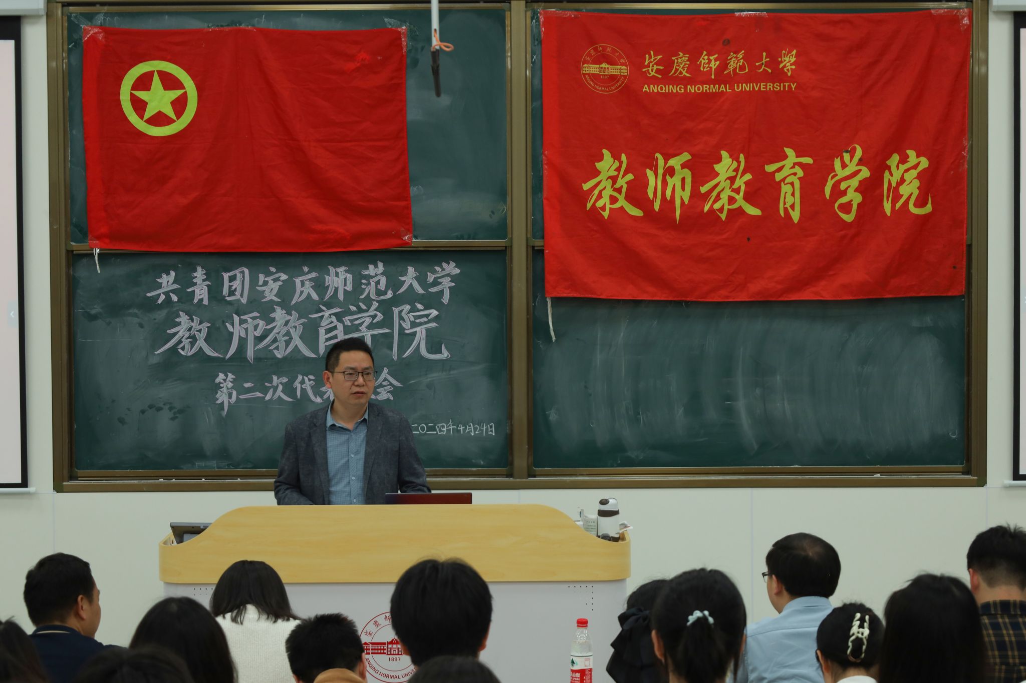 4月24日,共青团安庆师范大学教师教育学院第二次代表大会文渊楼108教室召开。学院党委书记何孔蛟,党委委员、副院长诸园、王皓宇出席会议。学院全体专兼职辅导员及学院团代会120名代表参会。会议由院团委负责人姚强诚主持。