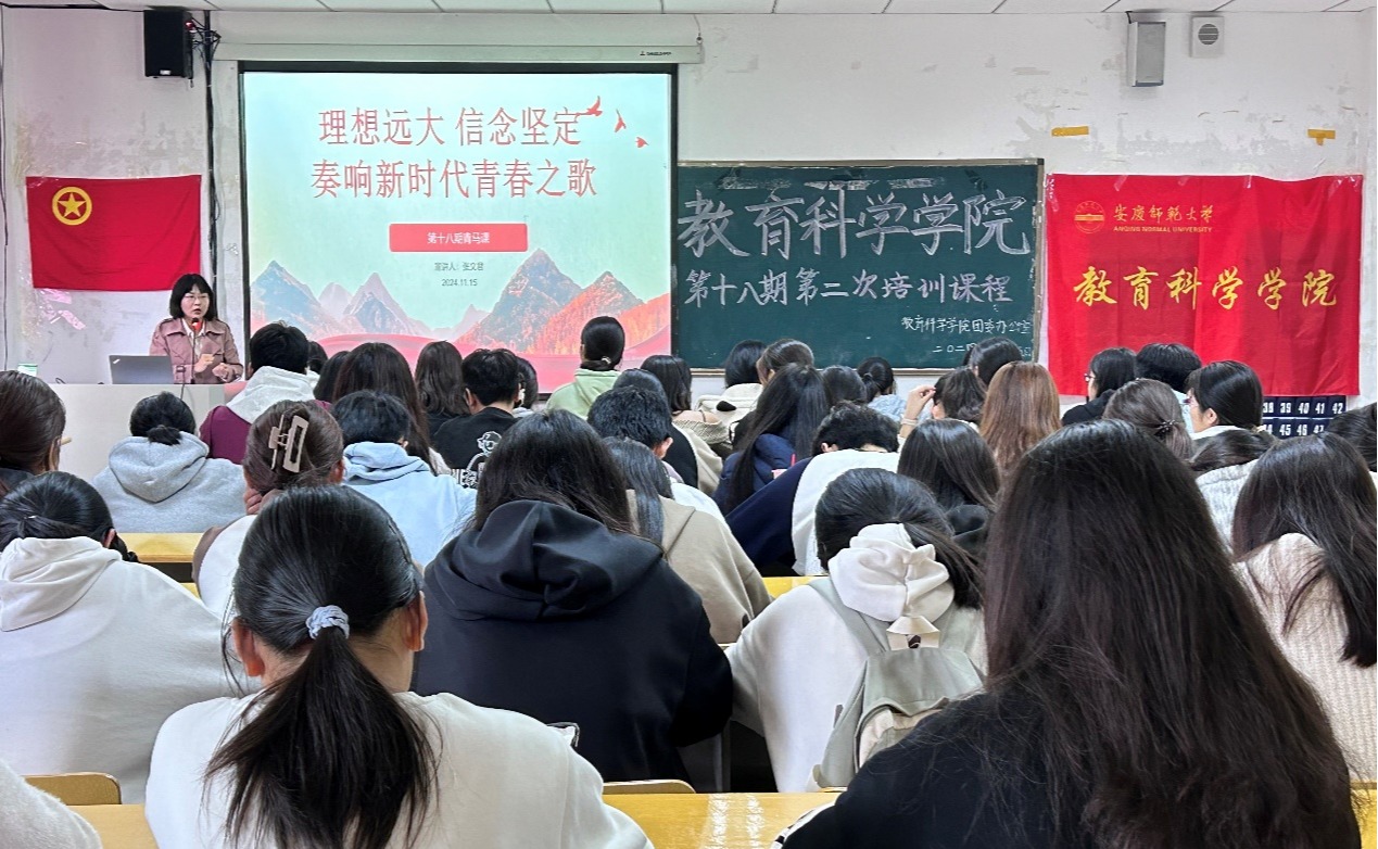 于J305教室举行第十八期青马课第二次课程。院专职辅导员张文君主讲,2024级各班班长、团支书及学生会全体成员参加。