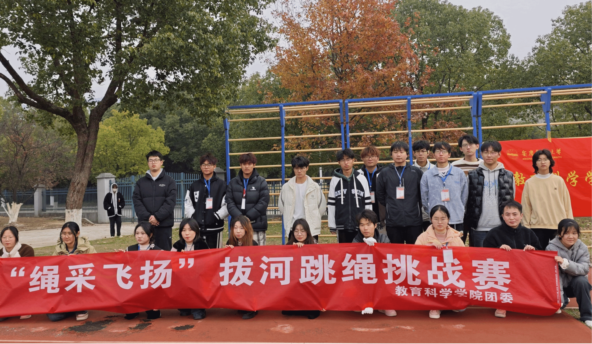 12月7日,学院团委学生会在东门操场举办“绳彩飞扬”拔河跳绳挑战赛,近200名学生积极响应,参与其中。