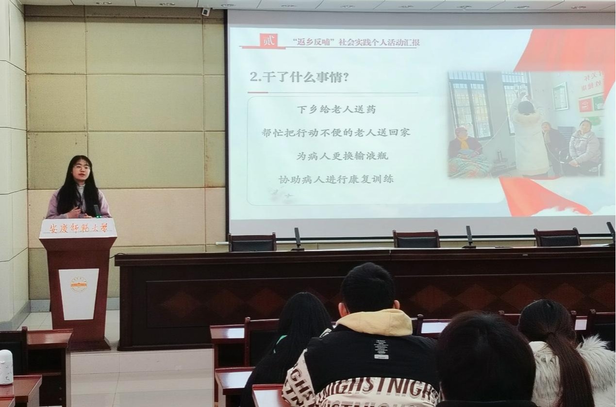 2月26日,校第十六期青马班“返家乡”实践活动分享会在行政楼一楼会议室举行,校团委负责老师王颖欣、学院团委实践委员郭柳森担任主讲,青马班其余成员到场参加。
