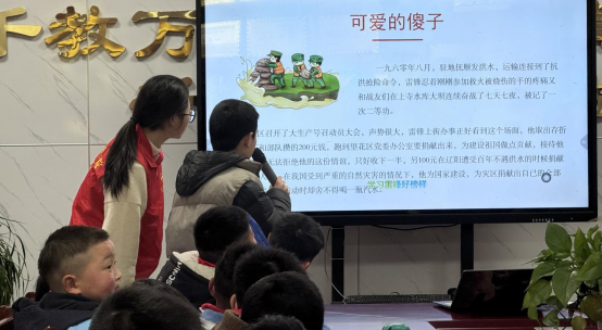 志愿者通过宣讲,带领学生们重温雷锋的感人事迹。从雷锋担任拖拉机手时的敬业奉献,到雨中护送母子回家的无私善举,再到他省吃俭用支援灾区的点滴故事,志愿者们以鲜活的事例展现了雷锋“全心全意为人民服务”的赤诚之心。学生们认真聆听,深刻体会到雷锋“干一行爱一行”的螺丝钉精神、“刻苦钻研”的钉子精神以及“节约一分钱”的朴素作风。