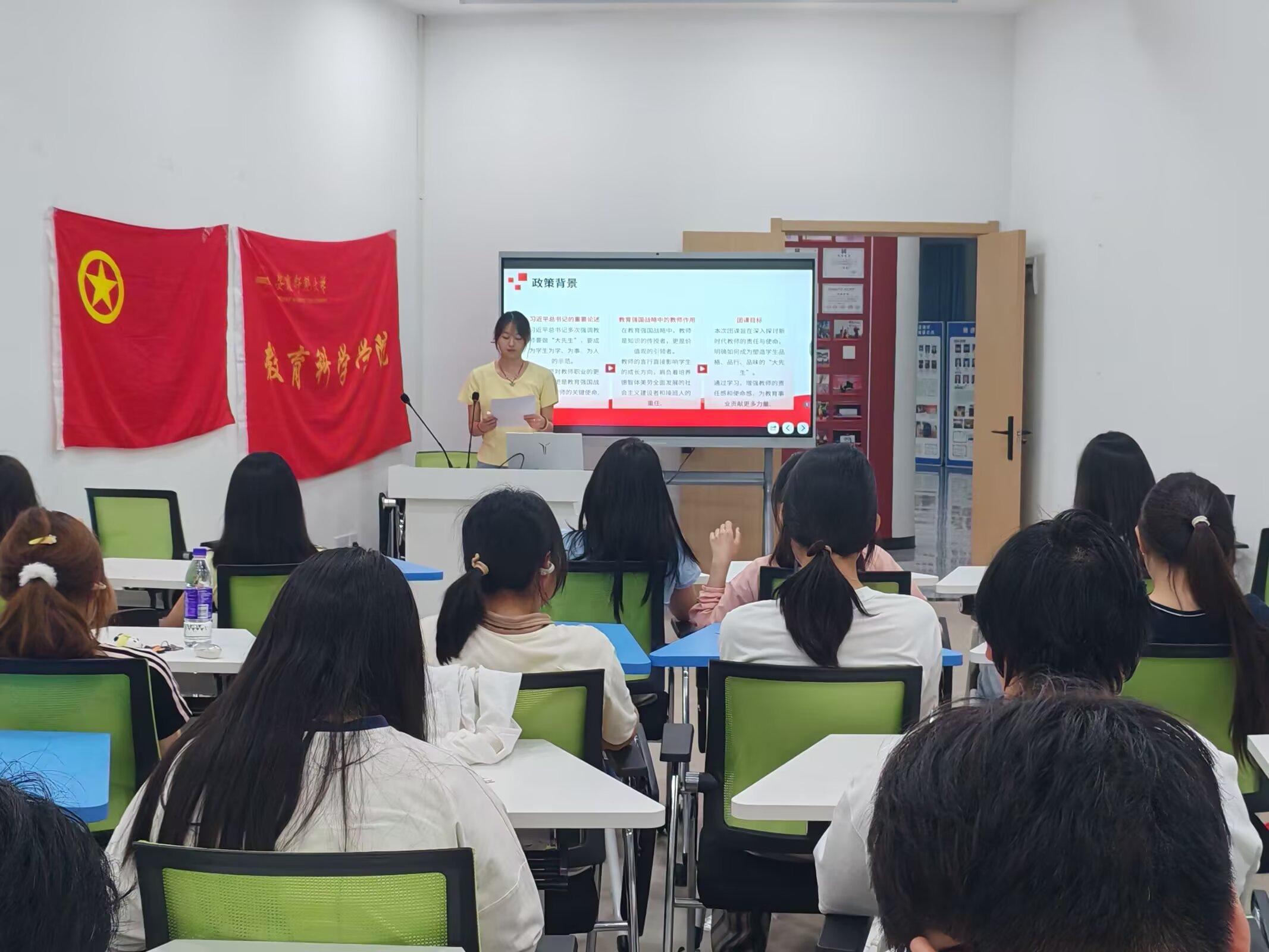 于一站式学生社区美育活动室2举办《论教育》—“教师要成为塑造学生品格品行品味的大先生”主题团课。活动由院团委实践委员刘筱羽主持,快猫