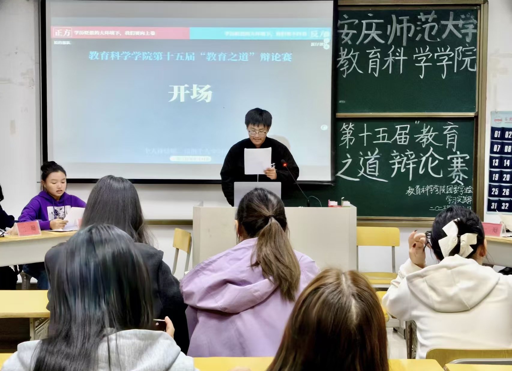 在J106教室举行第十五届“教育之道”辩论赛。比赛由辩论队前队长张悦、王雪、乐成玉等同学担任评委,王翔、刘雅捷主持。