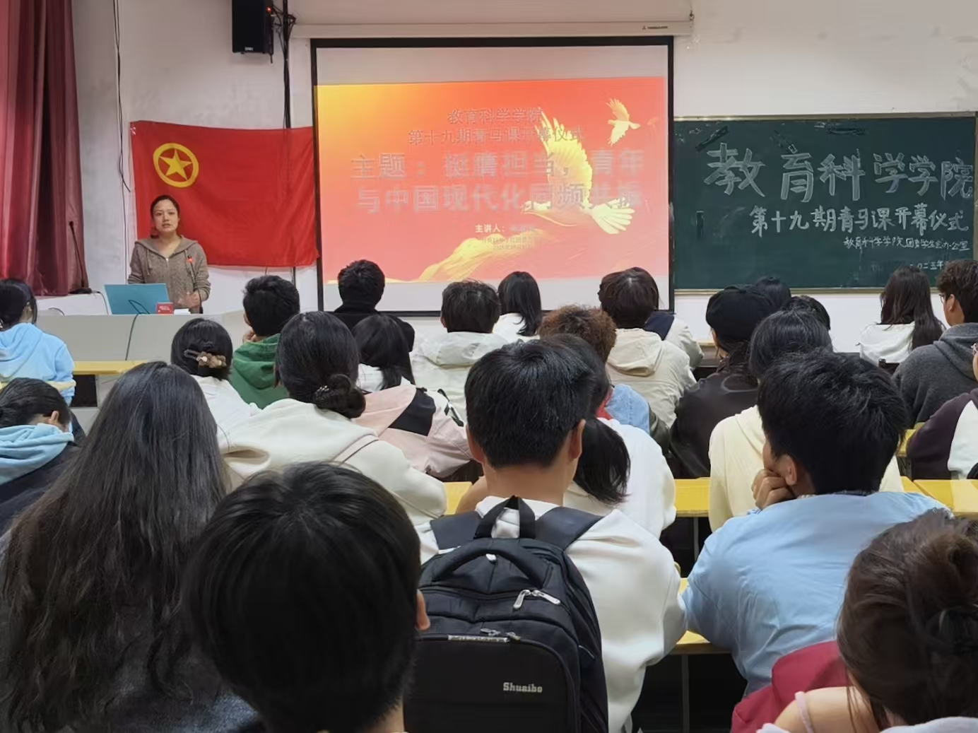 在J305教室开展第十九期青马课开幕仪式。会议由院团委副书记姚强诚主持,2025级学生积极到场学习。