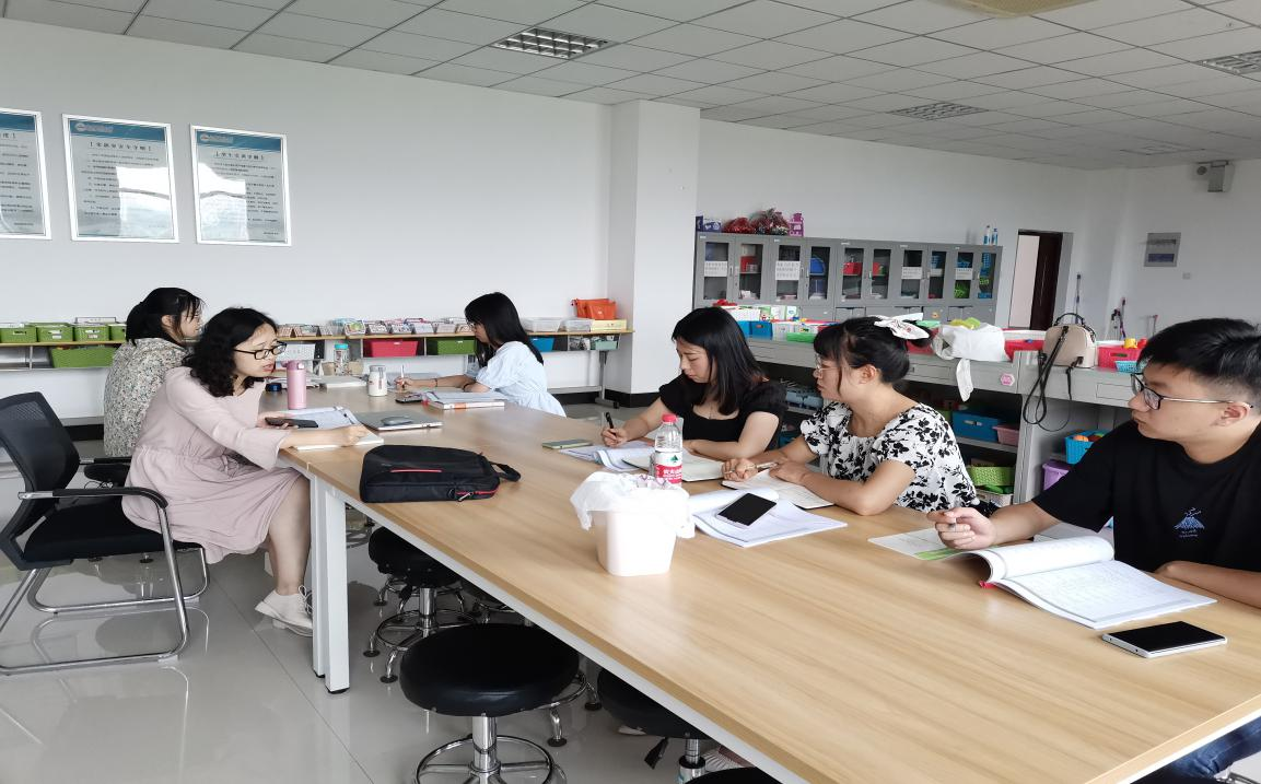 进行为期一周的交流学习活动。5月24日,特殊教育教研室主任郭启华及特殊教育专业部分教师、学生参加了座谈交流。大家先就集体课、个训课上学生出现的问题行为进行讨论,之后刘文雅老师就集体课的分层教学从教学目标、教学方法等方面进行深入分析,为了帮助教师明确具体的做法,刘文雅以《认识苹果》为例,从个别化教育理念出发介绍了《自闭症儿童发展本位行为评量系统》,结合沟通、社会情绪、认知、适应行为、动作发展五大领域为班里每个学生设计了个别化教学目标,让每个学生都能参与到课堂之中,做到“一个也不能少”。