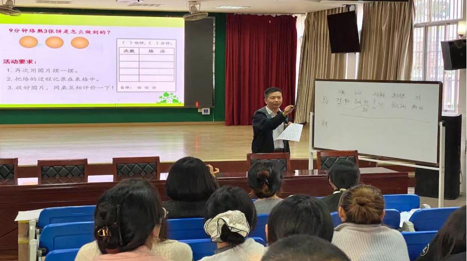 张翔老师围绕“从教走向学”的先进教学理念,结合《烙饼》教学实例,将学科实践研究中的理论成长心得与实践成果毫无保留地分享给在场教师。他以深入浅出的方式,详细阐释了如何把抽象的数学理论转化为趣味盎然的课堂实践活动,为教师们呈现了一堂生动的“理论落地”示范课,极大地激发了大家对数学学科教学创新的思考热情。
